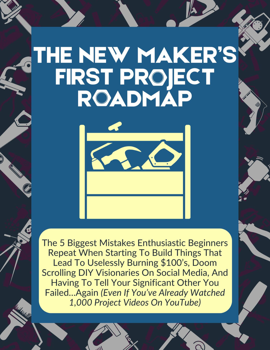 A complete roadmap for making your first successful project.How to make informed tool purchasing decisions without wasting $100s.The 5 biggest mistakes new Makers repeat (and how to avoid them).The 2 biggest pitfalls that shatter you focus and leave unfinished projects on your workbench.